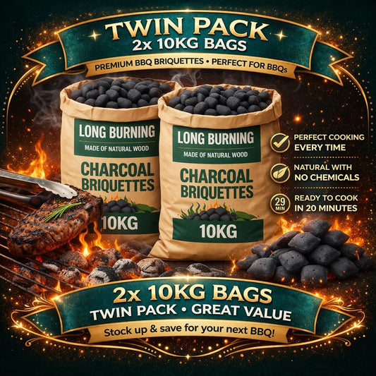 2x 10kg Bag of Premium BBQ Hotter Longer Burning Charcoal Briquettes