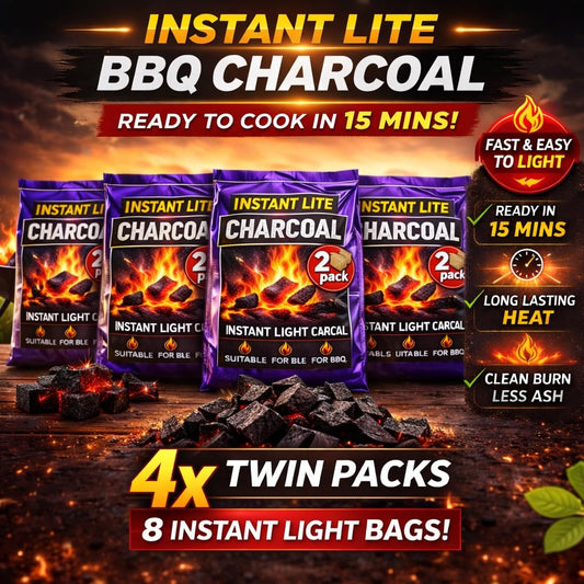 8 x 1.25kg Bags (10kg) Premium Instant Light BBQ Lumpwood Charcoal (4x Twin Packs)